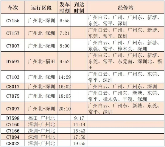 深圳站较目前新增了16:15、17:00、17:30三个发车时刻,弥补了目前15:30至18:00时段一站直达列车的空白。